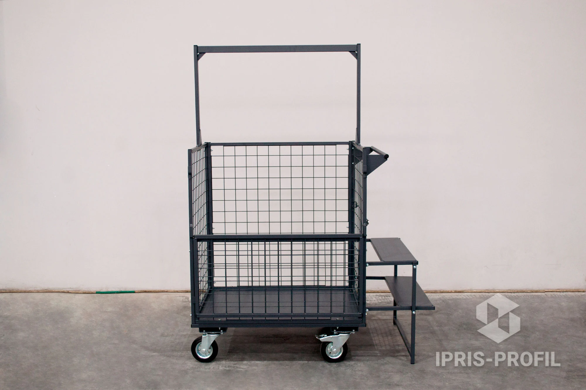When manufacturing the trolley frame for product placement profile and round pipes of Ipris-Profil company’s own production were used.