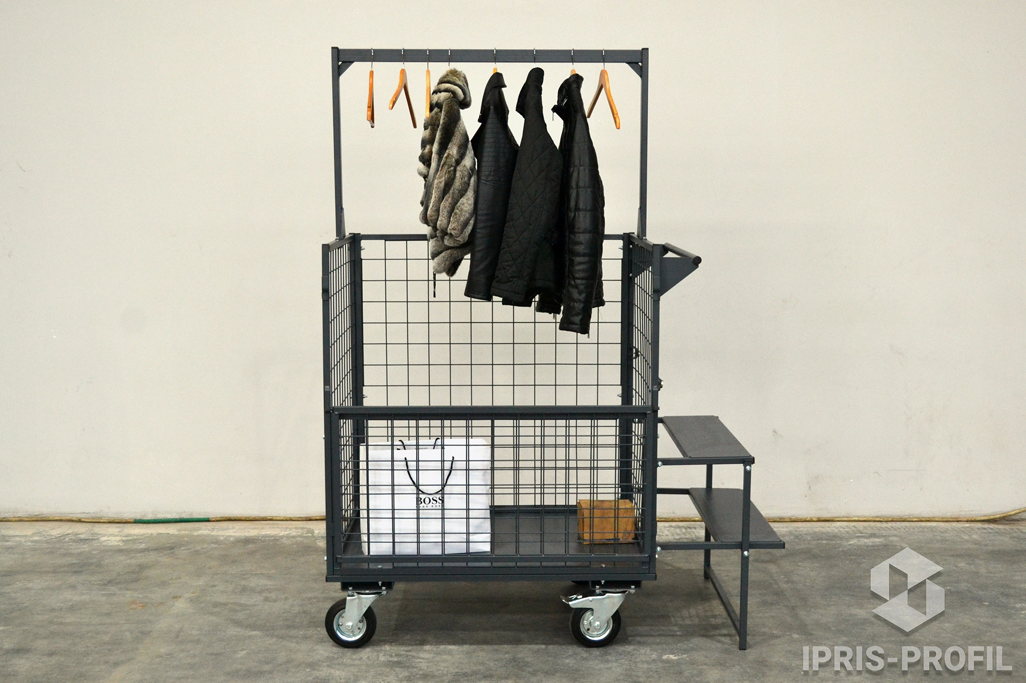 There are no direct equivalents to this clothing trolley with garment rack. The unique construction was engineered and is manufactured exclusively by Ipris-Profil