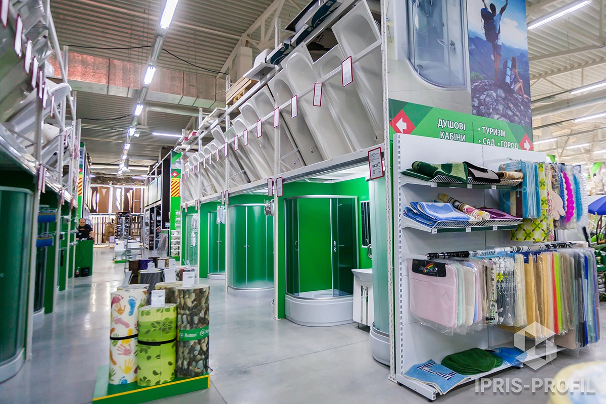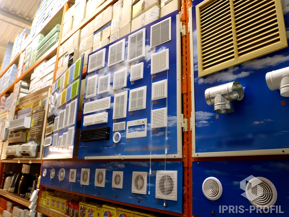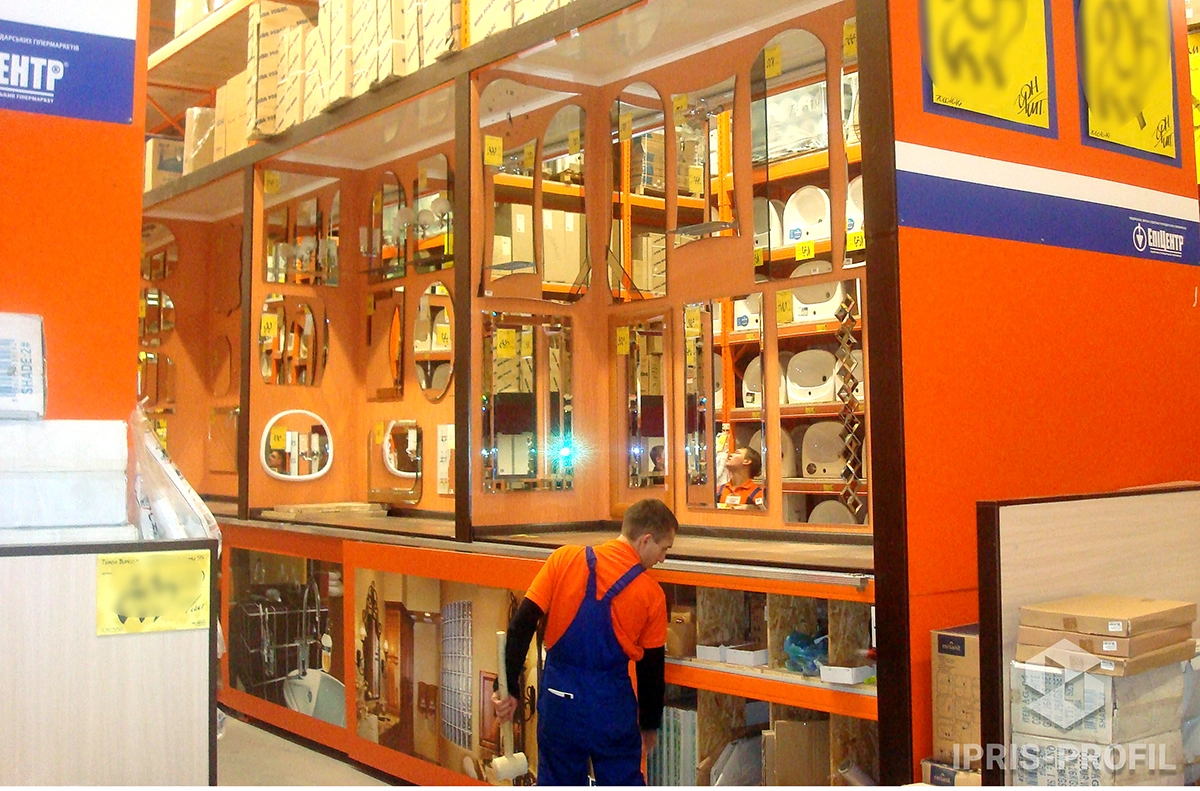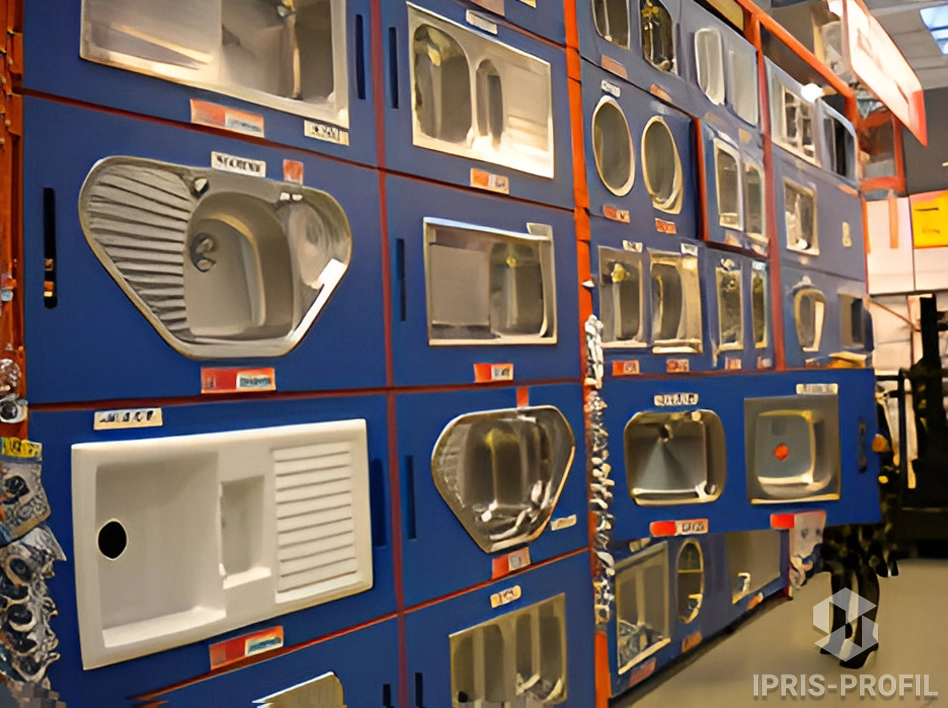 IPRIS-PROFIL, a manufacturer of commercial equipment for displaying sanitary ware in hardware stores, offers customised solutions for displaying goods in building materials stores and commercial exhibition halls, including vertical and horizontal display cases, combined systems with internal storage areas, and custom-made shelving for sanitary ware.